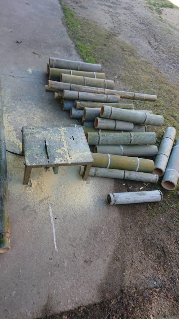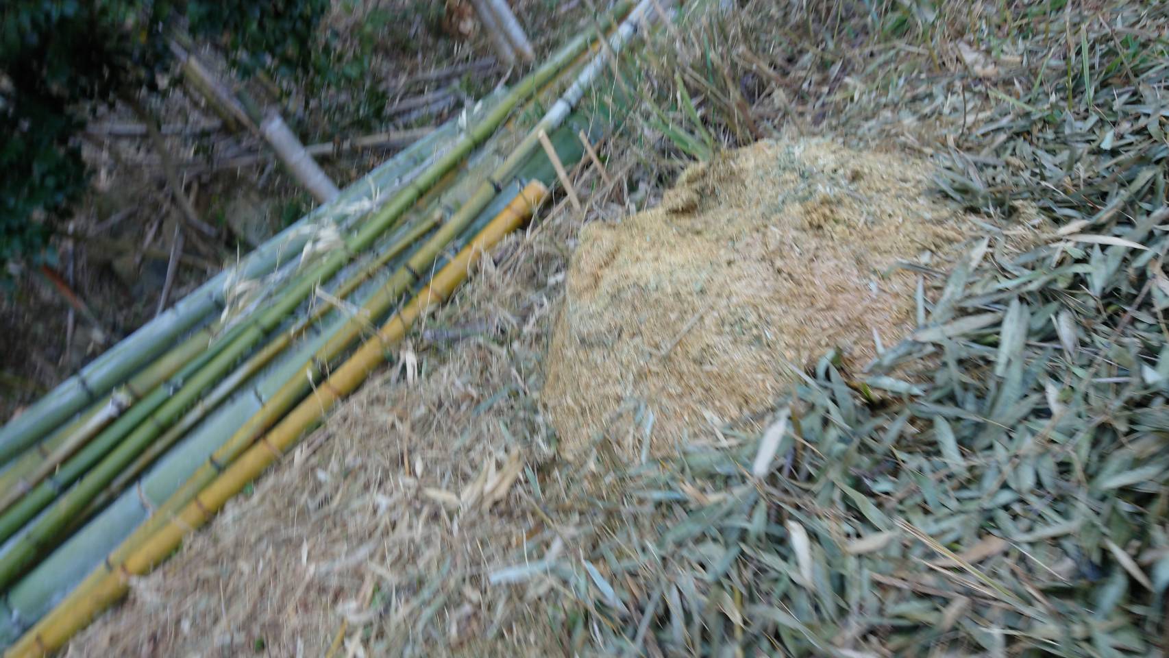 朝から夕方までで1回分完成し竹炭が肥料袋半分程度できるそうです。
