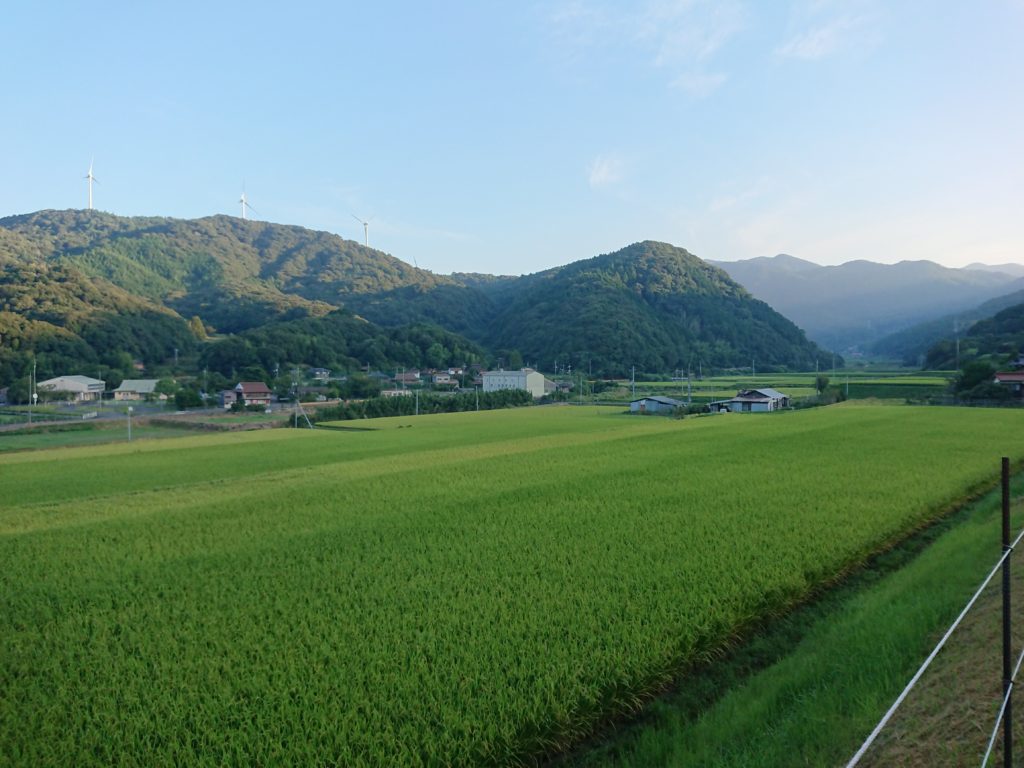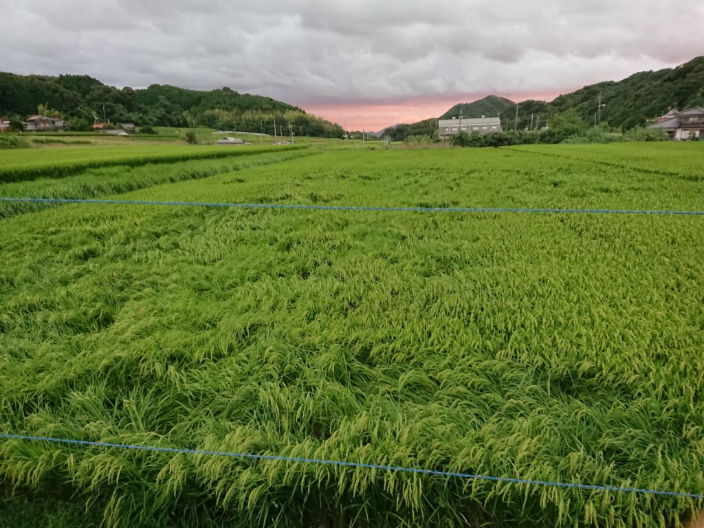 9月初め 台風もコースがそれたので、稲はあまり倒れていません。助かりました。あとは虫や病気が出ないように気をつけます。